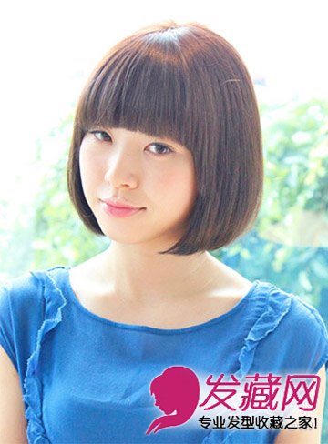 这是一款齐刘海bobo头发型,根据脸型修剪出的弧度齐刘海遮住额头,有效的将额头与脸蛋的比例打破,完美的塑造小脸效果,时尚的波波头也进一步修饰了脸型,营造立体五官。