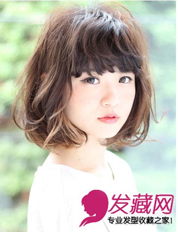 蓬松感和凌乱的刘海,盖着原本宽大的额头,将脸型衬托的很小,亚麻色染发时尚流行,走个性路线的美眉们,可以尝试利用卷发刘海创造出小脸的效果。