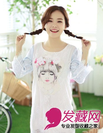 让可爱的蛋卷头大变身,由时尚转为可爱型的一种,精致可爱的双马尾发型不仅可爱而且显气质,两侧蓬松的刘海发型凸显出一种甜美的公主风,尽显小女生的甜美娇俏。