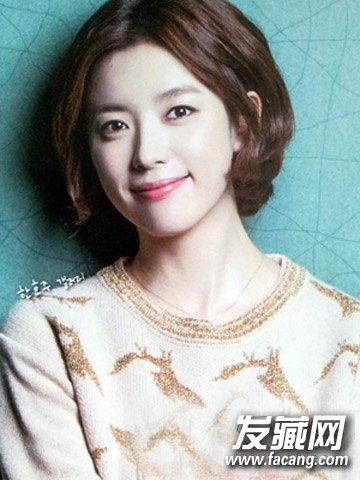 中分短发一直是很受圆脸女生青睐的修颜发型,简约大方的露额短发加上烫发设计,很有韩流时尚气息。