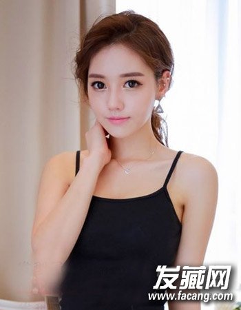这款时尚的韩式女生发型也很适合圆脸的女生哦,清爽的露额发型不仅简单而且时尚有气质感,简单的低马尾优雅有气质。