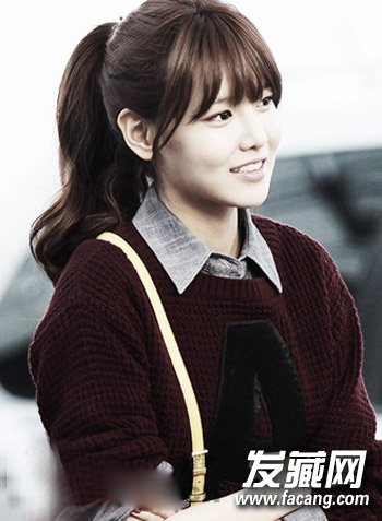 这一款卷发马尾不仅犀利干练而且比较适合逛街哦,搭配上韩式的毛衣与衬衫的搭配十分有型,而且对于圆脸的妹子来说修颜感很好哦。