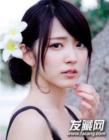 甜美而优雅的侧边盘发发型显露出无比时尚的一面来,甜美的斜刘海盘发加上清新的头花点缀看起来无比清新,两侧的鬓发很好的贴合圆脸。