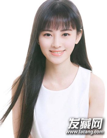 科研的平刘海发型也是很适合圆脸的发型哦,时尚的碎发刘海加上气质的长直发发型不仅有范而且颇显轻熟风,对于圆脸的妹子来说再适合不过了。