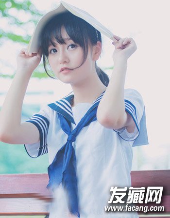 微微内扣的刘海加上一款低马尾发型的扎发也是很适合圆脸的发型哦,两侧的圆弧形的鬓发的设计起到满分的修颜感。
