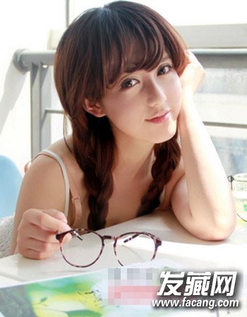 蓬松刘海搭配上可爱的双马尾编发凸显出小清新范十足的气质来,整个造型打造出时尚而且气质的一面来,简单甜美。