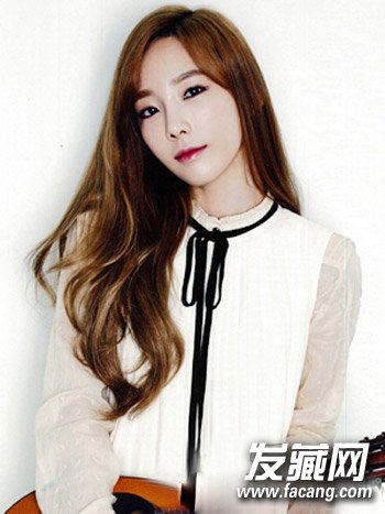 这款韩式圆脸卷发是很多淑女系MM的心头好,简单的偏分长发,蓬松的烫发设计搭配棕色染发,衬托出白皙水嫩的肤色,同时很有女神范儿。