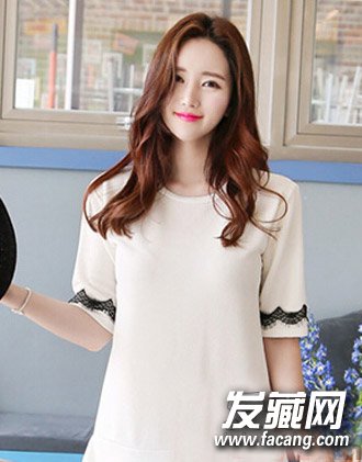一款颇有甜美气质的长卷发设计,配合上棕色的染发,打造出无比的时尚感来,中分刘海的设计也轻松勾勒出一张精致的小脸。