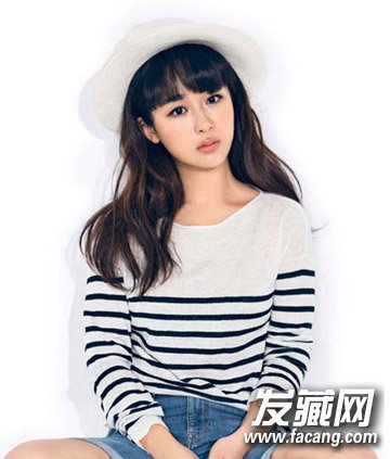 自然卷度的长发,整齐厚重的齐刘海,加上纯白的帽子装饰,好一个阳光可爱的妹纸