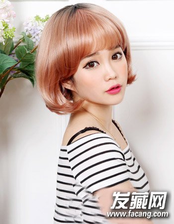 可爱的粉色系的染发颜色显露出时尚的减龄时尚来,气质的短发波波头搭配上小脸勾勒出别致的时尚感来,而且发尾的内扣自然清爽。