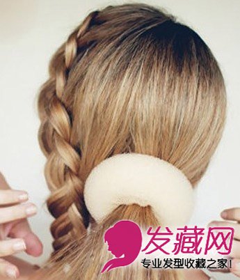 在马尾的发结处套蓬松的海绵发圈,头发较短或者发量比较少的MM们可以选择小一点的海绵发圈