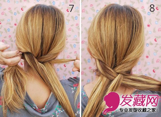 8、在将右边那一小撮发束放在最左边发束的上面;