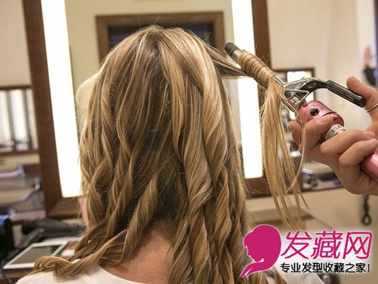 1、头发梳顺之后,先用电卷棒将头发一束束烫卷一下,这样做出来的造型比较漂亮。