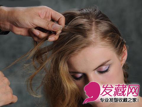 将右侧头发以两股鱼骨辫的手法从头顶向后编制,再拉出纹理效果;