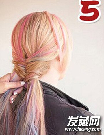 STEP5:继续取一小片头发从一侧到另一侧的编织方式,一直往下编。