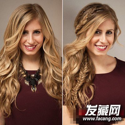 这次介绍的是两款发型哦,左侧是性感的大波浪,右侧是少女的编发,爱美的MM们快学起来吧。
