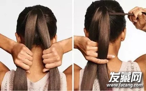 STEP1:将头发梳成一个高马尾,从中间一分为二。