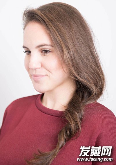先把发根处的头发编成发辫,然后把上面的头发绕在发辫上,发尾扎紧就能呈现自然的龙虾尾的效果。