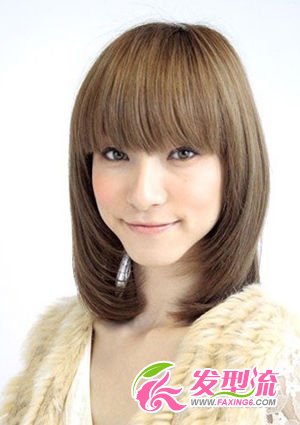 整齐的突显了一双清澈动人的双眼,轻薄的发量空气感下足,如果头发稍厚的女生可以不妨值得尝试哦!发梢修剪出层次感,内扣颈部显现出小巧的脸型。此款也很适合方脸女生哦,粟色彰显出如少女般清新、简单的个性。