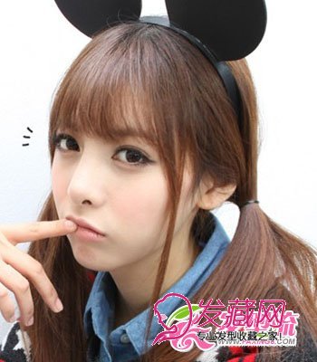 不得不说,发饰的点缀为发型加分不少!利用不同的发饰就能打造出不一样的魅力。将直发随意扎出双马尾造型,轻薄的刘海与额际垂落的发丝都是发型的打造关键,粟色染发将白皙的皮肤衬托得更加通透,缔造最迷人的魅力。