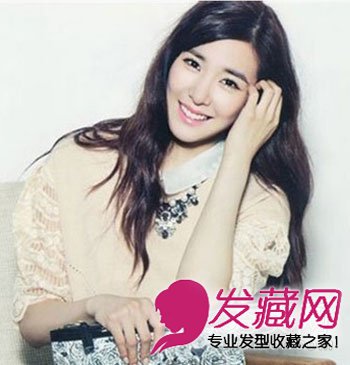 微卷的长发发型,带有小家碧玉的感觉,非常唯美,斜分的刘海修饰出完美的脸型曲线,同时也将脸型衬托的很完美。