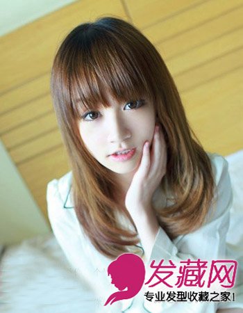 齐刘海发型给人一种甜美之感,中长直发发发型发尾微卷更显甜美,颇有小清新女生的文艺范。