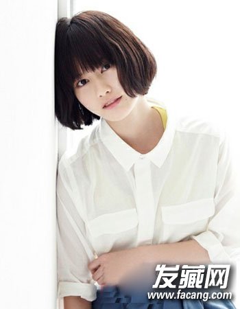 再是一款清新可爱感十足的校园女生直发波波头发型这种只是简单的将中短发波波头进行厚重的刘海设计与清新时尚的咖啡色染发相搭更显女生的可爱甜美风哦。