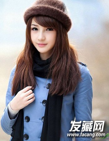 一款很简单的女生直发发型,同样以厚重的半圆形刘海设计为主的一款校园简约直发,微显蓬松式的长直发造型再配合清新低调的棕色染发更显女生的优雅温柔风。
