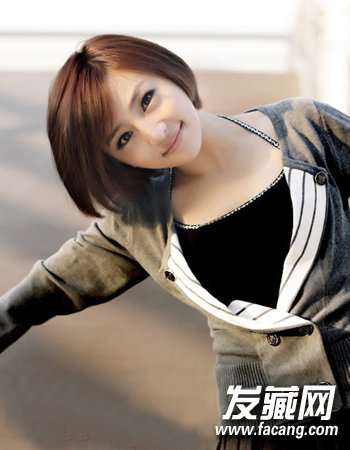 一款很显女生清秀感的简约直发发型,同样还是偏分式的斜刘海设计,而这种中短发式的直发波波头发型与清样的棕色染发相搭最显校园女生的清样可爱感了,而且也是一款修颜还好打理的校园造型。