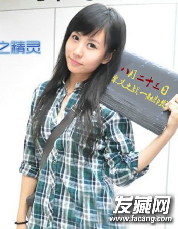 一款很显女生的温柔甜美风的校园简约长直发发型,同样以碎发形式的的发梢造型为主,而配合这种简单的没有经过烫发与染发处理的自然造型更显小女生的清纯甜美风。