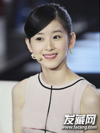 这一身无袖格纹裙,颇有知性OL风范,简洁的斜刘海扎发,配上淡淡的妆容,淡定的笑容,十分温婉可人。