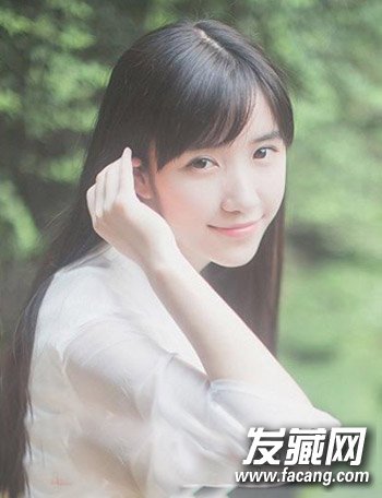 散发出自然清新气质的长直发发型,超清纯,家悦的斜刘海修饰出巴掌脸型,落肩的黑发搭配白色连衣裙,灵动治愈。