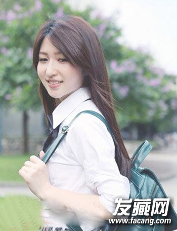 干练的垂直长发,带有一丝知性感,对于想要成熟美的圆脸女生很好示范,三七分刘海甜美显气质,身穿白衬衫,干净的学生校花形象。