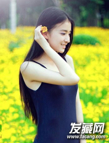 喜欢小清新范发型,看起来干净简约又舒服,曼妙的及腰长发,保持最纯美的黑直发造型,适合脸蛋的大方侧分,凸显田园风女孩的浪漫情怀。