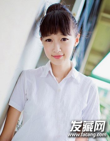 小清新范十足的一款齐刘海发型,清爽的花苞头盘发勾勒出别致的气质感来,小编个人觉得这款造型很适合学生妹子哦,彰显出清甜的校园女生范。