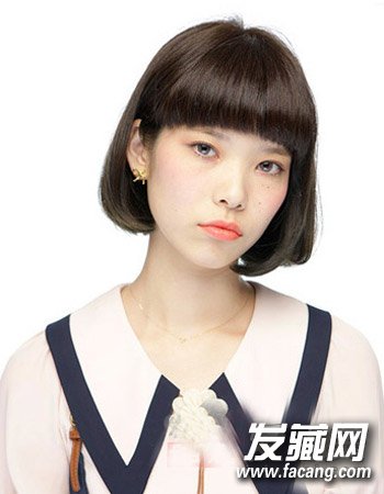 颇显知性的一款齐脖短发发型,日式露眉刘海增加了呆萌灵动感,摆脱了造型的呆板,厚重的齐刘海带着微微的弧度十分显气质,发尾内扣完美的达到修颜效果。