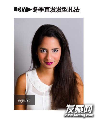 扎发之前:先要用梳子将直发全部梳理好,让头发不打结,然后将头发侧分。