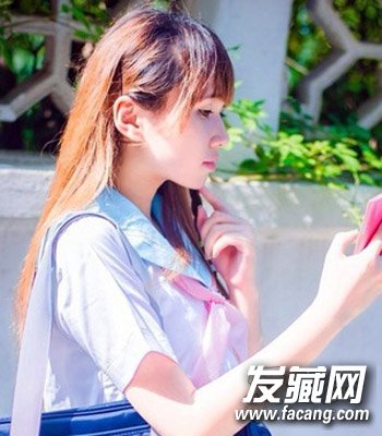 很有淑女气质的一款日系风齐刘海直发发型,柔顺的直发配合棕色系染发很有显白的效果,配合碎剪的刘海修饰脸型,轻松拥有瓜子脸。
