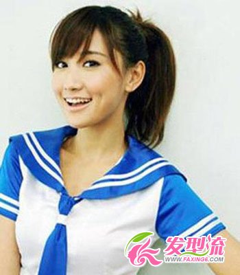 最最简单的让发型显嫩的方法就是,扎个高马尾。不管你头发长短,扎个高高的发辫,绝对会一下子嫩几岁哦!马尾发型,把女生清新纯美的气质展现无遗,突显俏皮活泼的个性。自然旁分刘海再配搭校服,清新可人。