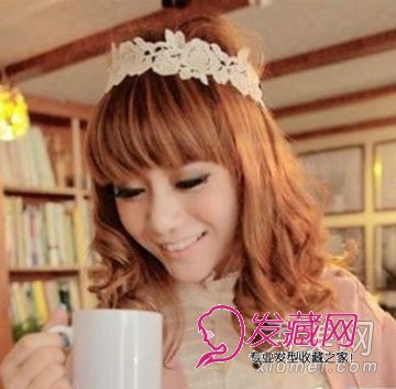 弧线的齐刘海非常减龄可爱,齐肩的小卷发带有淡淡的复古气息,发顶处打造稍稍蓬松的效果,并用蕾丝发带装饰,十分端庄甜美的淑女发型。